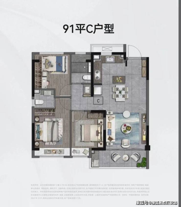 高层户型采用"三开间朝南+双卫全明"设计,81㎡做到独立餐客厅分离,105㎡创新"可变形厨房"
