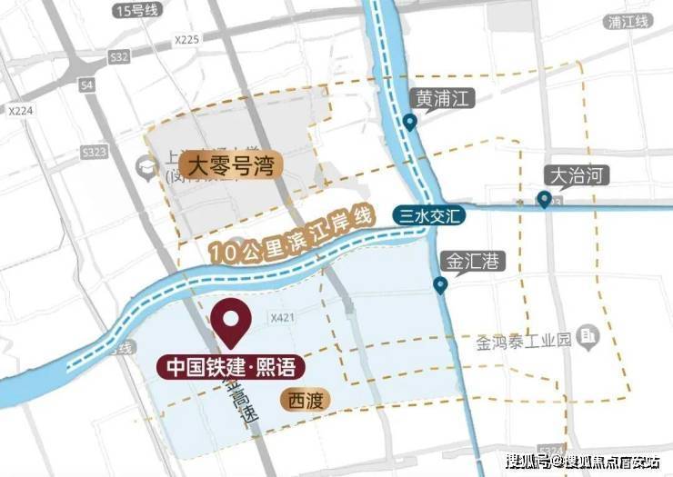 西渡板块,北面有“大零号湾”和黄浦江滨江公共空间、南面有“奉贤新城绿环”规划、东面有“三水交汇之地”规划,与三大市级重要战略板块紧密拥抱