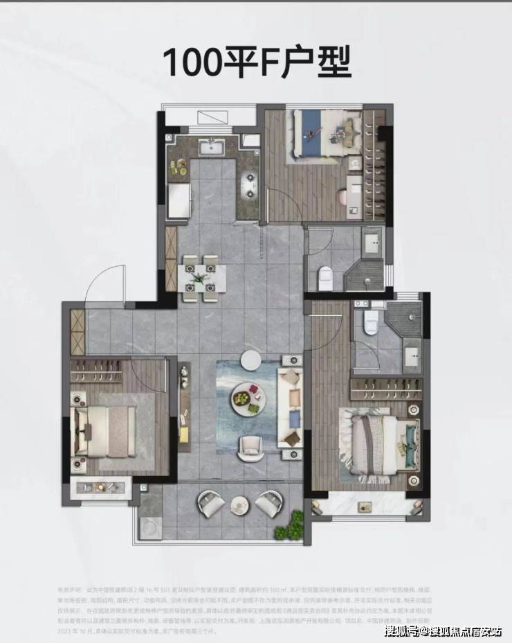建筑面积约100㎡样板间实拍示意图
