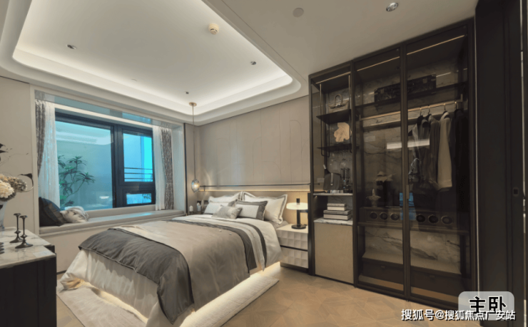 主卧约270°L形飘窗设计,将窗外的美景尽收眼底,注重美观的同时,也兼顾了实用性与舒适性,让业主在繁忙的生活中也能享受到宁静与安逸。