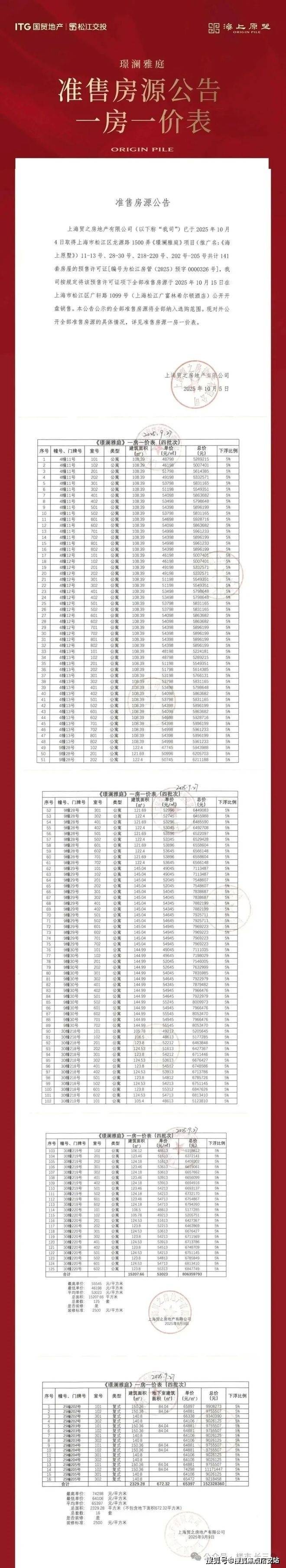 上期一房一价表: