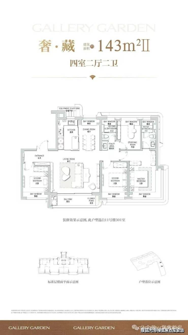 罕见七飘窗设置,主卧还是约270°转角飘窗,可多角度欣赏景观,同时大大增加室内使用面积,据悉七飘窗合计约12平米。