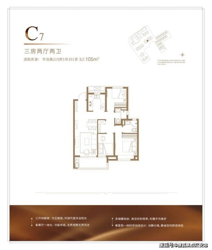 建面约104㎡的户型,能满足从二人世界到二胎生活的全生命周期需求,并且整体2-3开间朝南+客厅宽面阳台,整体的南向采光,视野以及尺度感很优秀,并不会感觉局促。