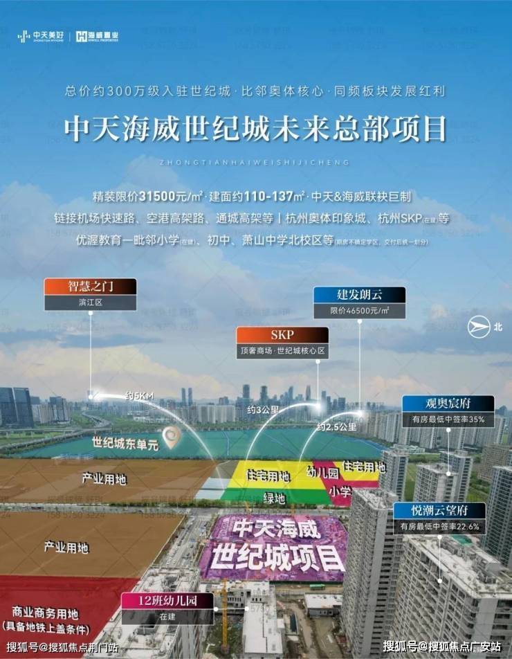 钱江世纪城新宁路与扬帆路,建筑面积:110、125、137㎡,精装限价:31500元/㎡(装修3500元/㎡),楼层:22-26层,层高:3米,套数:363套,绿化率:35%,项目特点:约6000方中心花园景观+无界泳池+主题架空层+星级酒店归家落客区+月映回廊!
