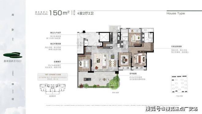 蠡棠森屿所有户型露台挑高可达6m,突破了高度限制,成就了墅级的挑高厅。很多户型拥有南北及270°转角露台,创新曲面转角院落,并实现全户型搭载“客厅/卧室-空中庭院”的主动线设计,整体营造立体墅式庭院生活场景。