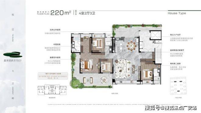 建面约220㎡的「典藏版墅居」堪称空中墅居的终极形态,独门独户+双重归家动线+前庭后院+无界景观+墅级挑高+动静有序+星级主卧。