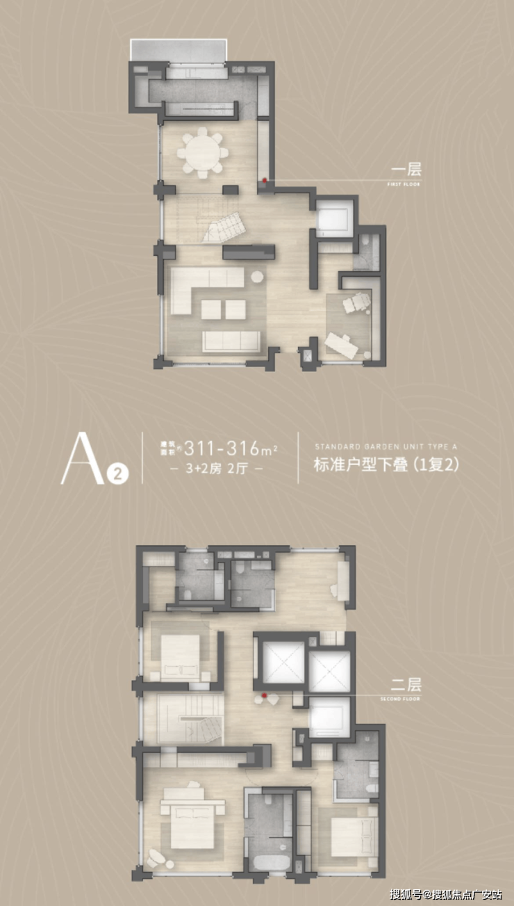 下叠(311-325㎡):3+2 房,附赠 100-200㎡私家庭院,总价 3700-4200 万
