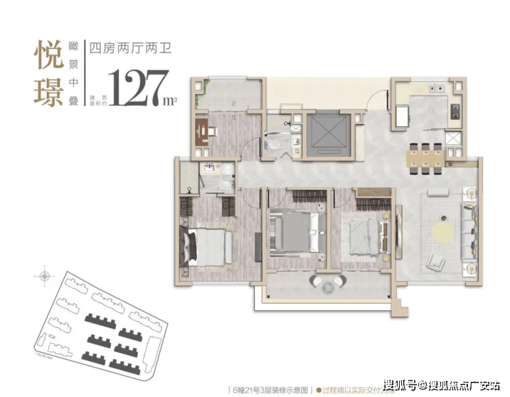 交付标准:精装交付(配备日立中央空调、威能地暖、兰舍新风系统等一线品牌)。