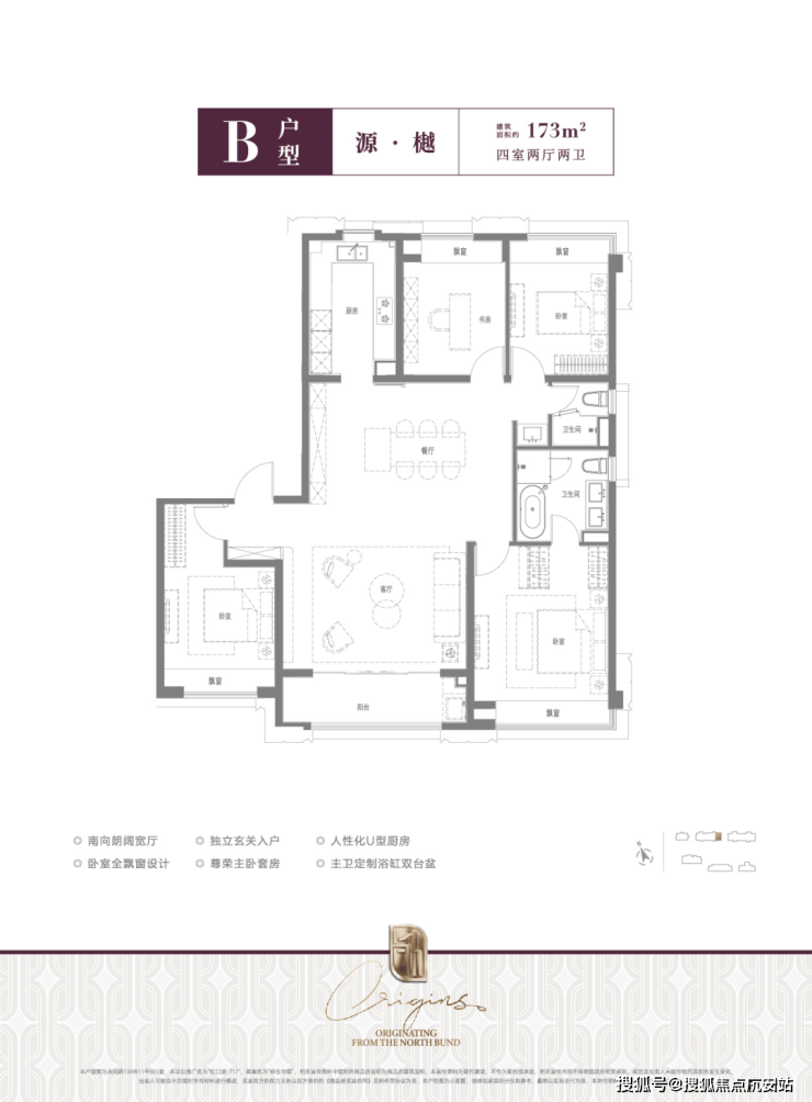 约 173-175㎡ 4 房:精装,均价13.8 万 /㎡,总价2380 万起