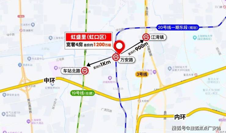 首先,虹盛里几乎可以看做是20号线万安路站(在建)的地铁上盖新房,几乎就是紧挨着的关系,下楼即地铁站。