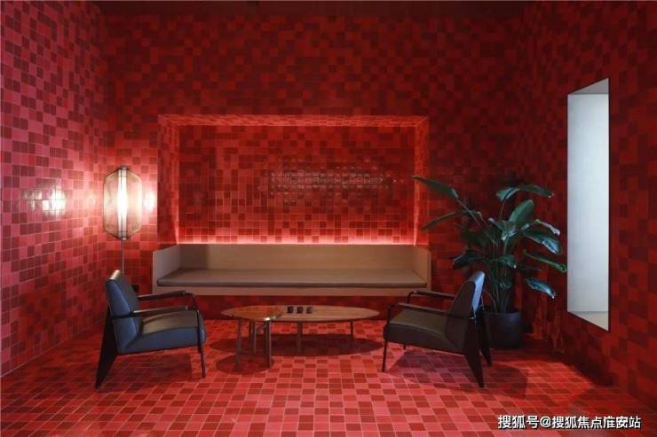 B1作为会所功能区,更别有洞天,不管是弧形拱门的泳池,中式灯笼光影完美融合打造的旋转楼梯,红色马赛克拼砖的休闲会客区,还是弧形拱门土耳其风格的泳池,每个都极具视觉冲击力。