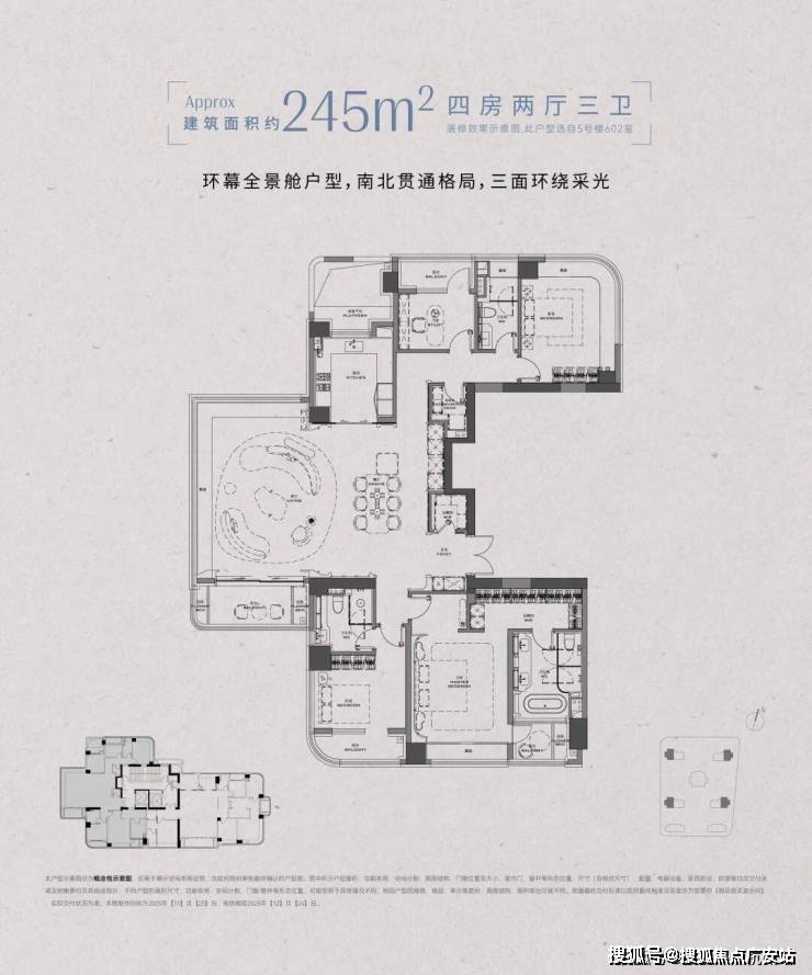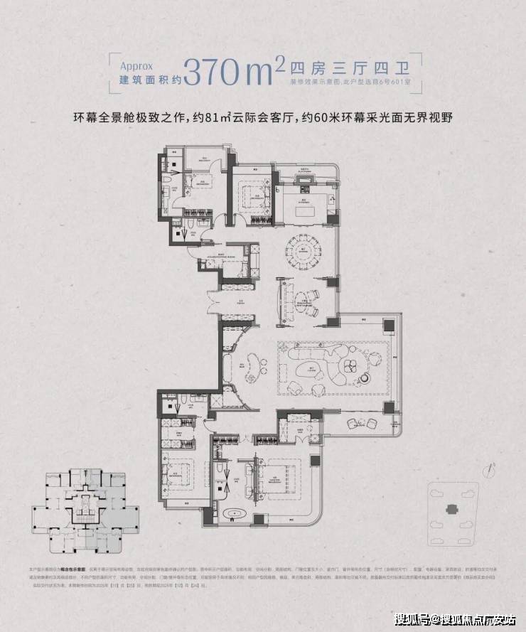 三、户型:高得房率 + 环幕视野,顶豪空间革命