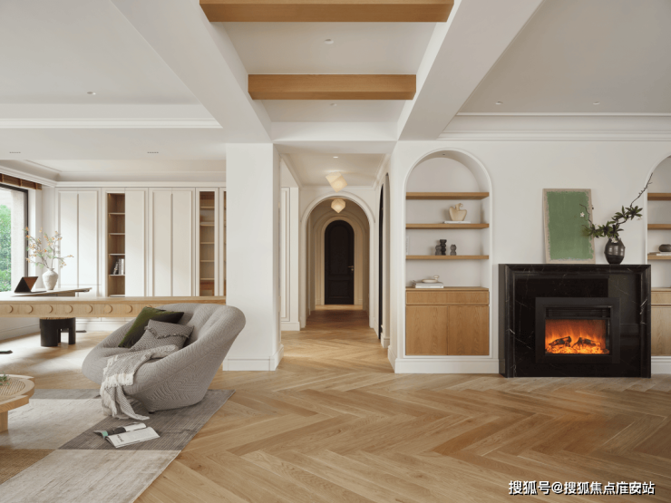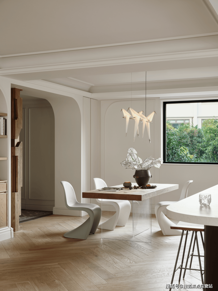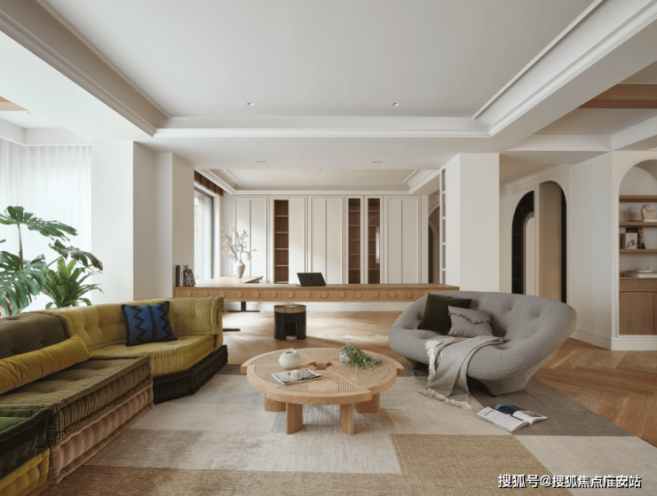 艺术的精髓在于对细节的诠释,客厅不仅重视空间布局的合理性,还将自然元素融入每一个细节。在悬浮书台的另一侧,屋主可以在书房内侧独自坐着,而另一个人则在客厅外侧,两人可以在这里一起搭建乐高,进行互动交流。