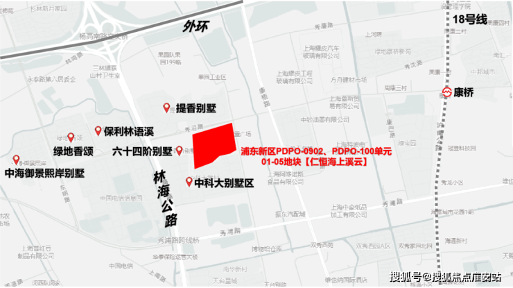 项目位于浦东外环外约1.1公里处,周边都是康桥老牌高端住宅区,如提香别墅、中科大别墅区、绿宝园等,项目将拥有醇熟的高端住区居住氛围。