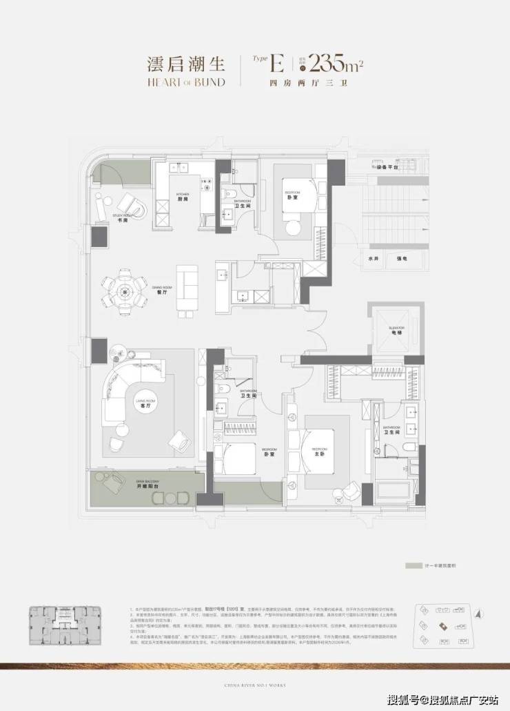 过去10年上海一线滨江住宅,大户型是绝对主流,120㎡级3房产品从未出现。澐启滨江是因2021年后滩九宫格有中小套型指标要求,得以推出120㎡级产品。