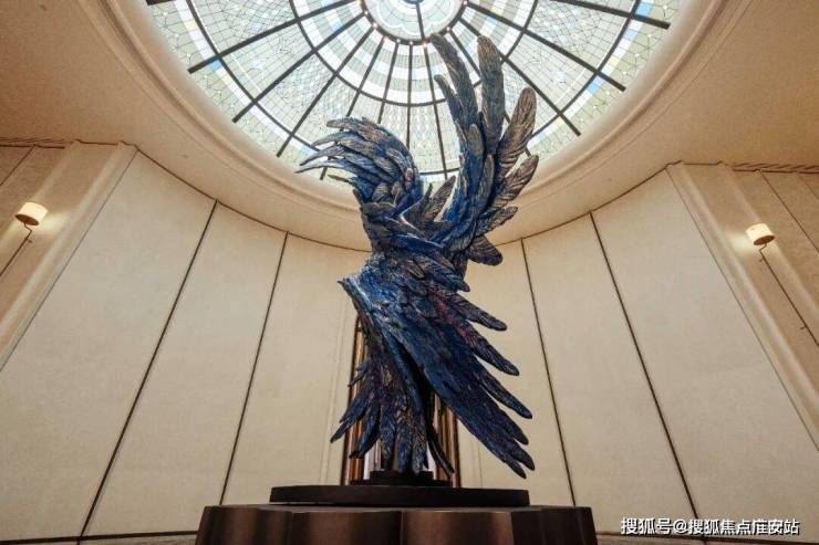 以玉兰门庭—迎归大堂—莳花荟为主轴,敬献步履生辉的归家艺旅:玉兰门庭如繁花盛绽,尊华瑞鳞水景聚运生财,双尊铜狮镇守家宅;迎归大堂流转光影艺韵,百羽栖澜艺术雕塑、芦海宸韵非遗绣作流淌摩登气韵;莳花荟中央会客厅移步异景,献映会客、休闲等雅会。