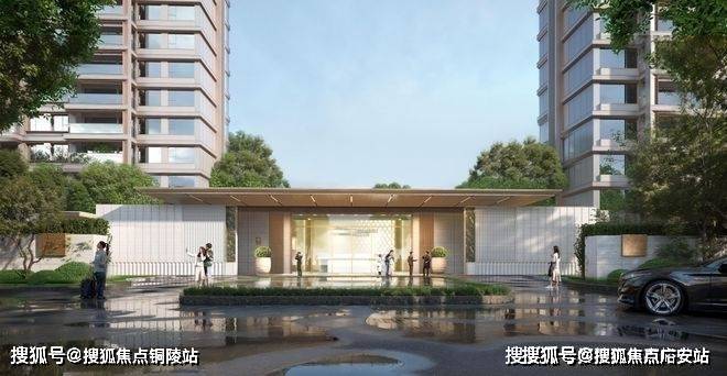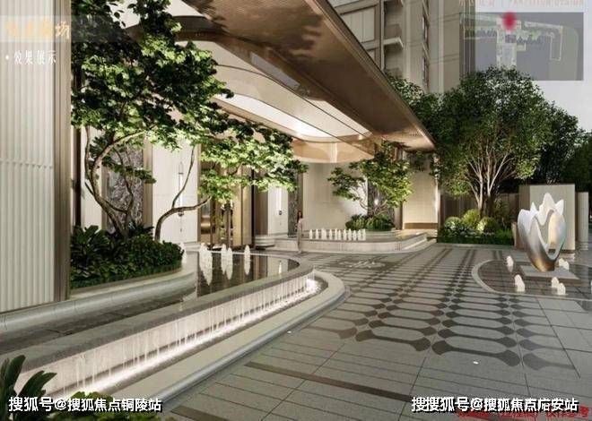 北入口社区大堂、下沉会所、下沉庭院与部分楼首层架空设计联合打造社区共享客厅,以折型风雨廊围合庭院空间,让业主的归家仪式感焕然一新。