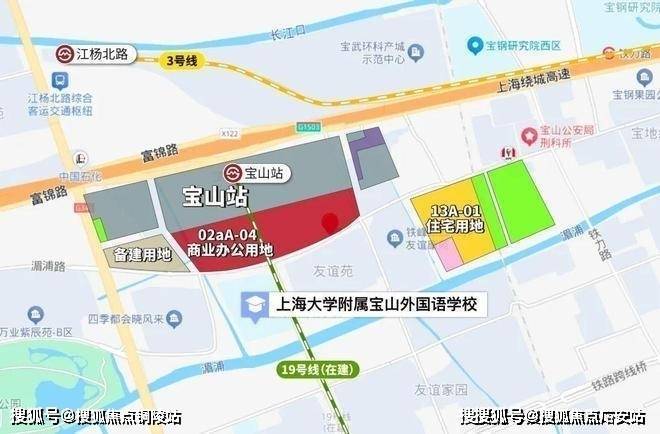 项目地处宝山杨行板块,是19号线宝山站(在建)TOD综合体地块。地块用途为商业、住宅、办公、餐饮旅馆混合,其中13A-01为住宅,容积率2.3,装修标准2500元/㎡。