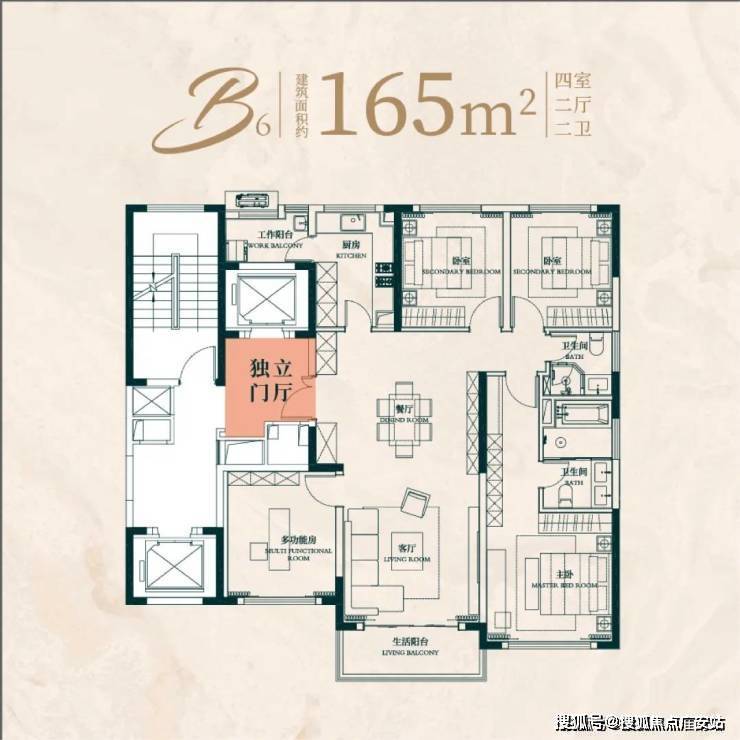 功能性上实现了四房一步到位,足以适配当下越来越多的二胎或三代同堂家庭。