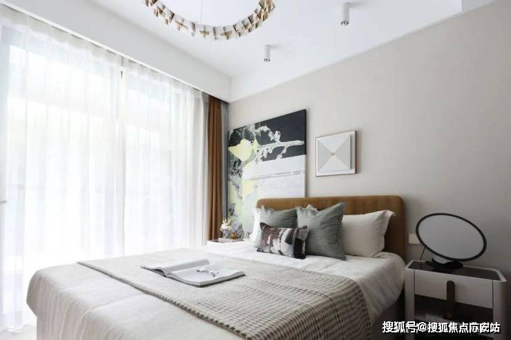 私密场域依旧保持静谧,黑白色基础上搭配了更多的色彩,例如深棕、浅紫等,艺术品的衬托深邃迷人,热络了家的氛围。