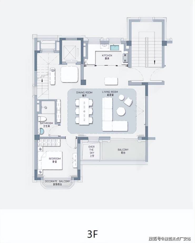 项目通过一楼家庭庭院,二楼星空露台,三楼罗密欧阳台,复原经典的三段式设计规制,还原出武康路罗密欧阳台的经典邬达克式摩登场景。