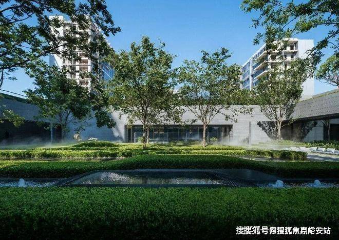 并通过跌水、涌泉和镜面水景等水景组合,将内部水景与外部水岸紧密相连。