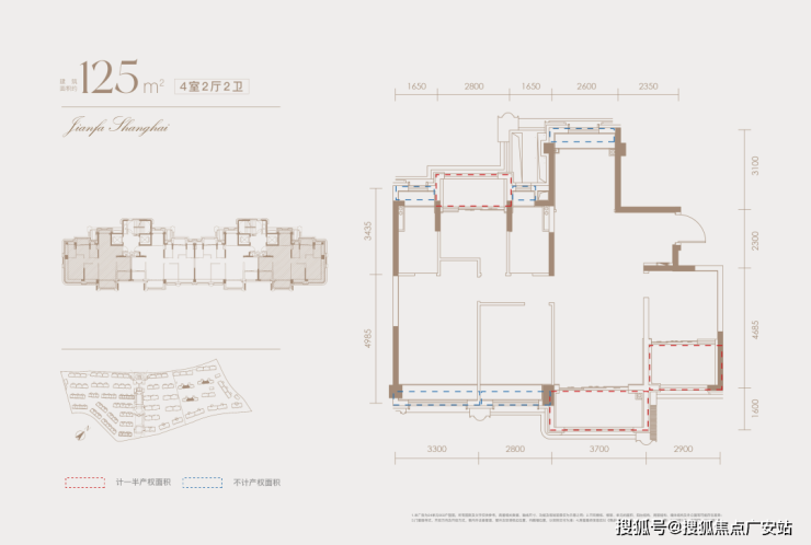 建面约228㎡下叠户型详细分析: