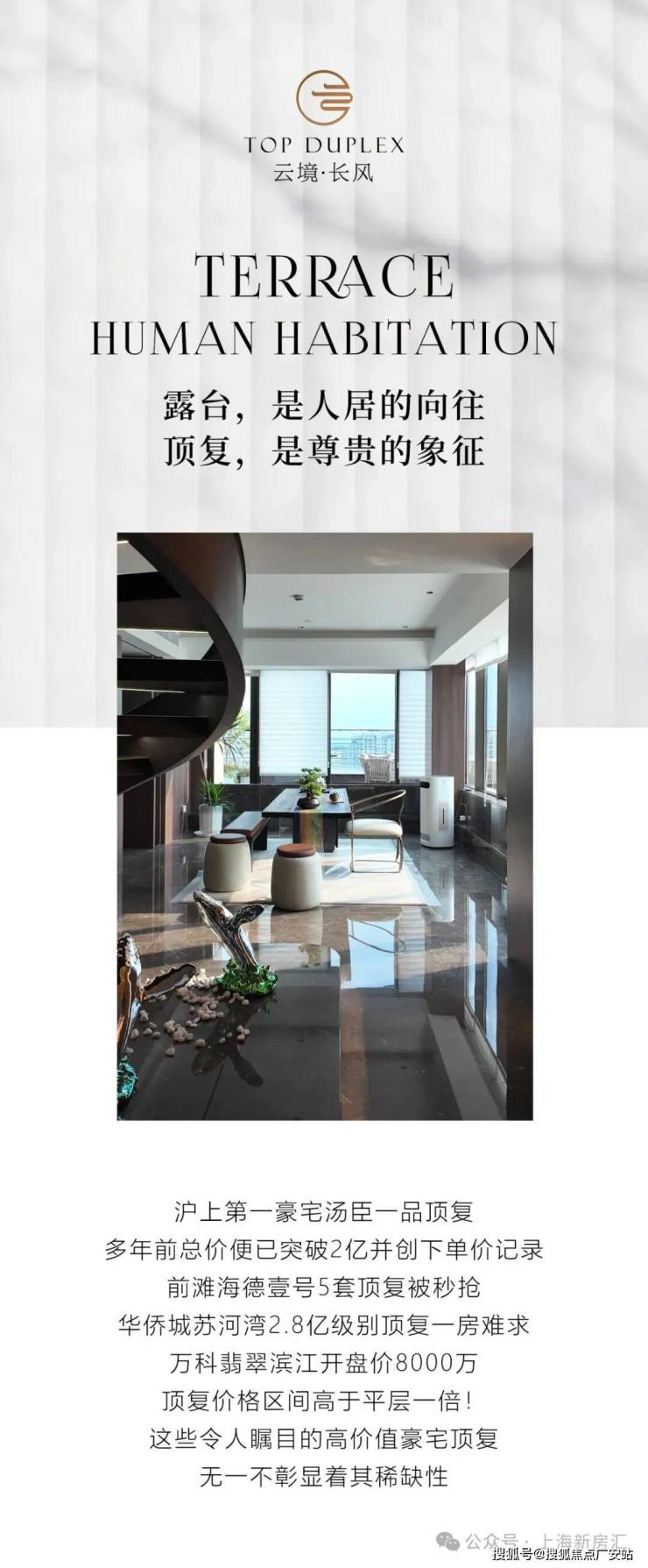 苏州河畔「云境·长风」在售336-341㎡ 顶层空中复墅,总价2500万左右!