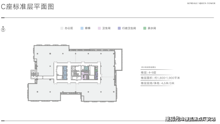 标准层面积:A/B座2400㎡-2700㎡ ,C座1800㎡-1900㎡(约1.2万平,整栋出租)