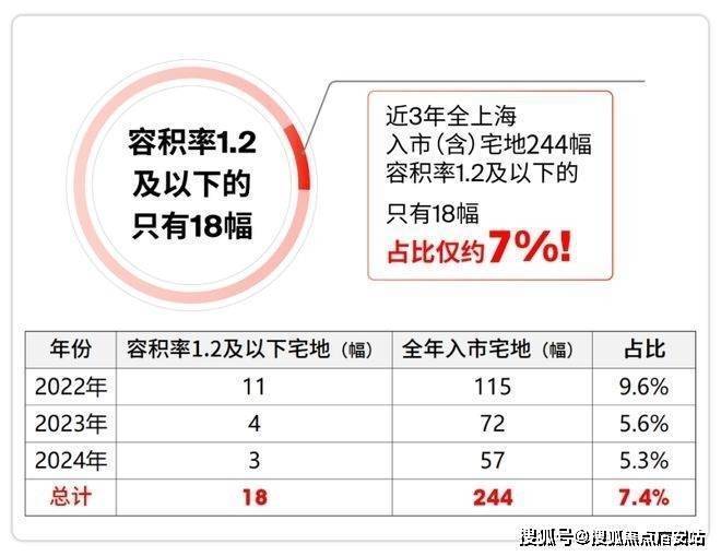 据不完全统计,2022-2024年上海出让的244幅宅地中,容积率1.2以下的地块只有18幅,占比约7%;且供应量还在逐年递减,2022年11幅,2023年4幅,2024年全上海只有3幅。