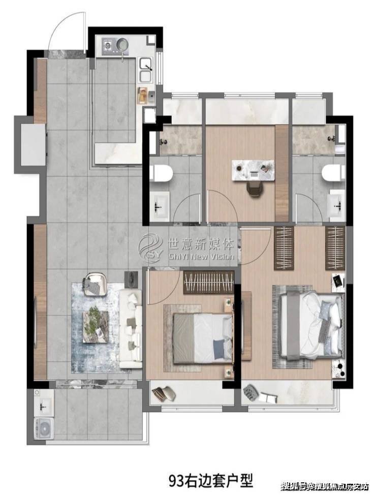 高层建面约93㎡3房2厅2卫
