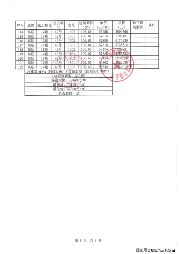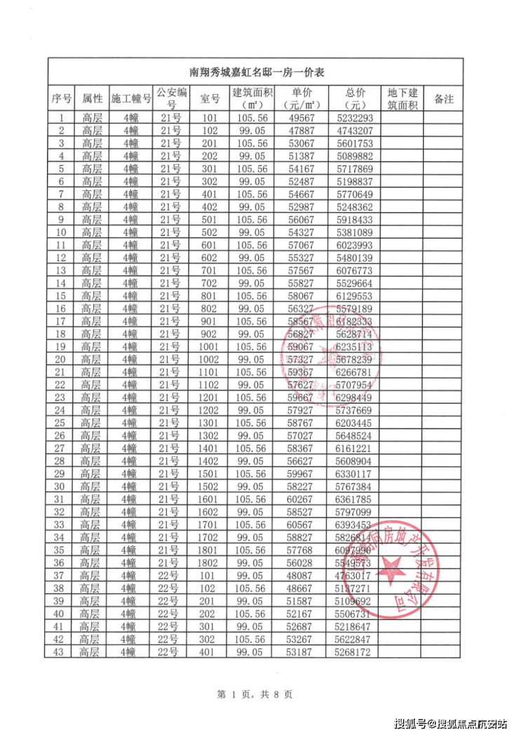 虹桥嘉悦府项目一房一价表: