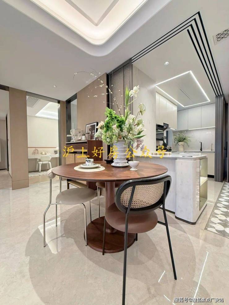 电视背景墙采用卡慕白的石材+皮革造型,弧形吊顶,相当讲究,连空调出风口的形状都打造为海上·清和玺logo山茶花的形状~~三大件为大金(或同等档次)中央空调和地暖,新风系统为百朗(或同等档次),南向阔景阳台,采光视野一级棒!