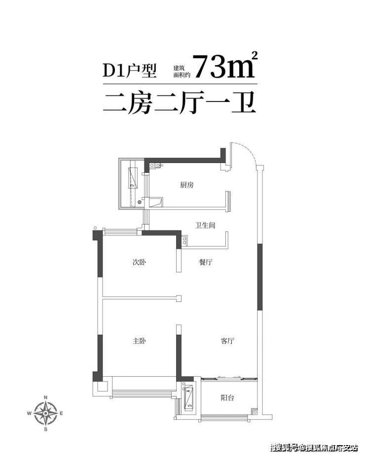 建筑面积约73㎡舒适两房一卫,年轻家庭的向往