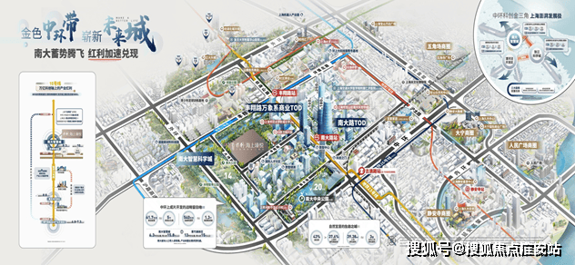 ◐从张江到漕河泾到南大智慧城,中环上的黄金三角关系呈现出了不可复制的“黄金中环科创带”,南大智慧城在空间格局上占据了北上海门户的科创中心。
