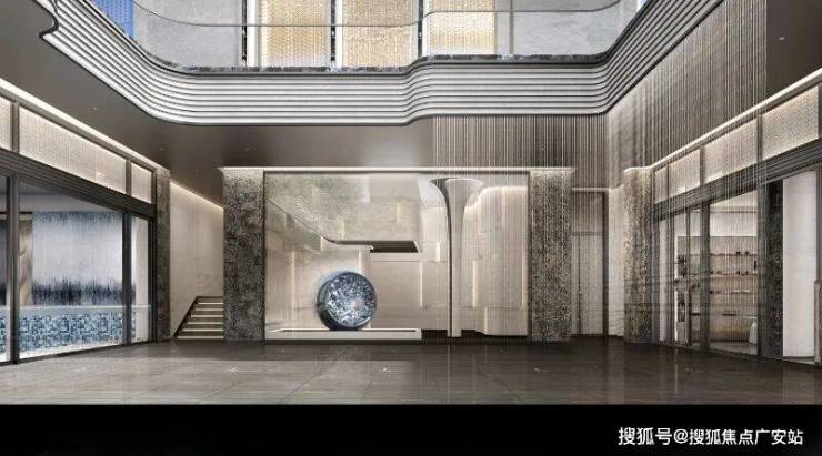 项目利用下沉式景观庭院,结合艺术花园、摩登水景等,打造了一座高端的下沉式会所,规划设有泳池、健身房、行政酒廊等场景。