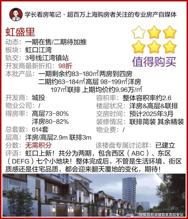 最新消息,虹口中环 虹盛里 建面 83-197㎡高层、洋房与联排!总价约 668 万起!稀缺机会!感兴趣的伙伴报名看房进行中!