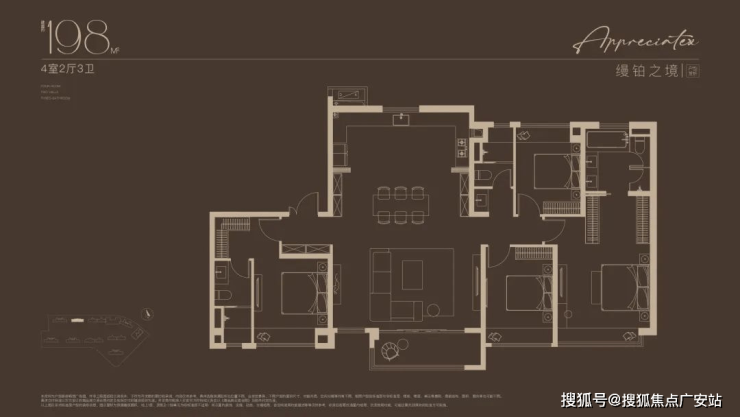 建面约172-198㎡的大平层,四房三卫+阔景阳台,宴请亲友超有面儿。