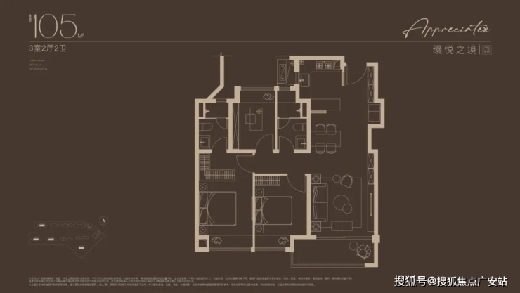 例如,建面约105㎡的三房,三开间朝南+双卫,让小家庭住得宽松不局促;