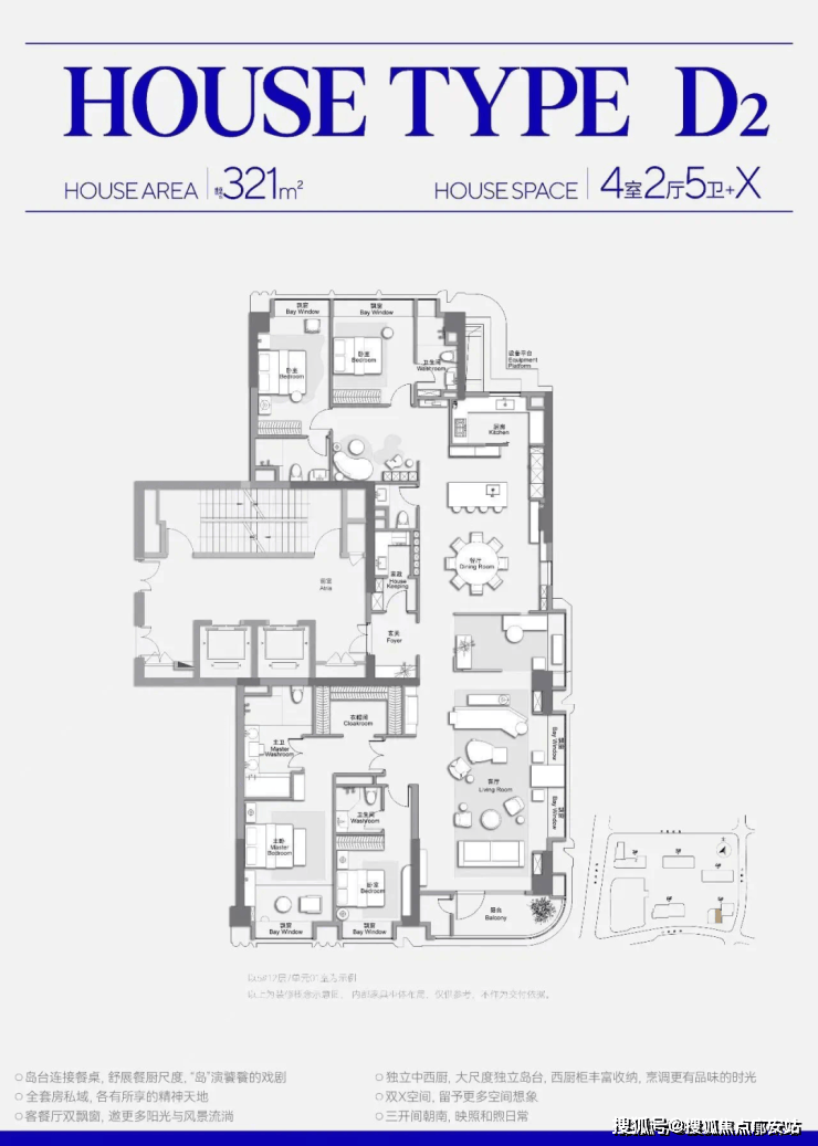 大户型(180㎡+)拥有270°弧形观景阳台,楼王产品南瞰中兴公园、北望森感景观