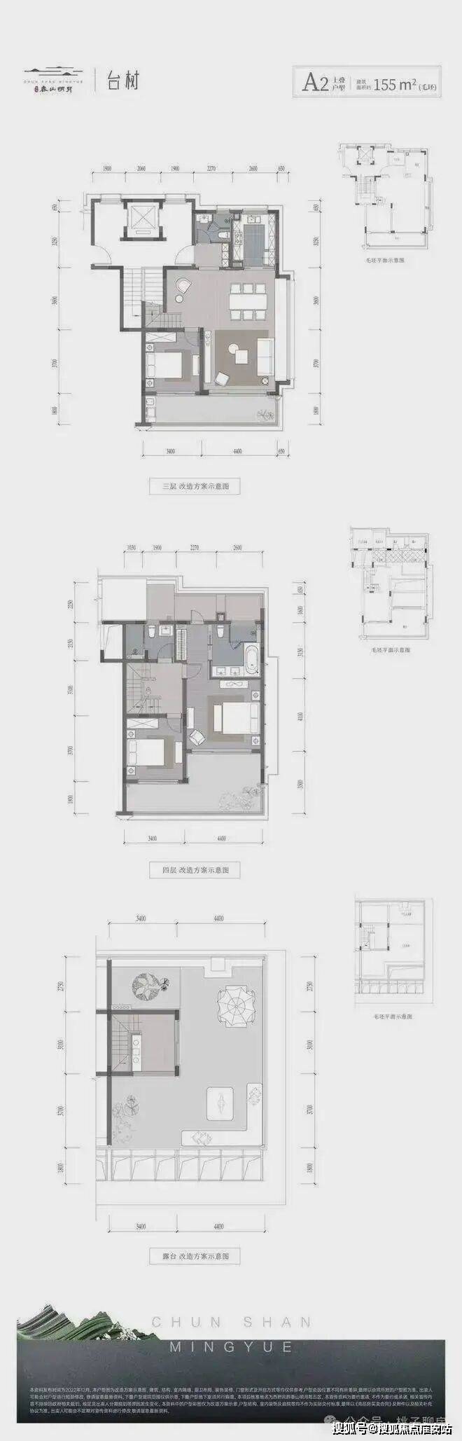 户型:纯低密叠墅组团,总高4层,下叠带地下室和庭院,上叠带屋顶露台