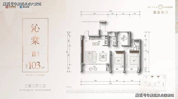 建面约103方三房两卫:
