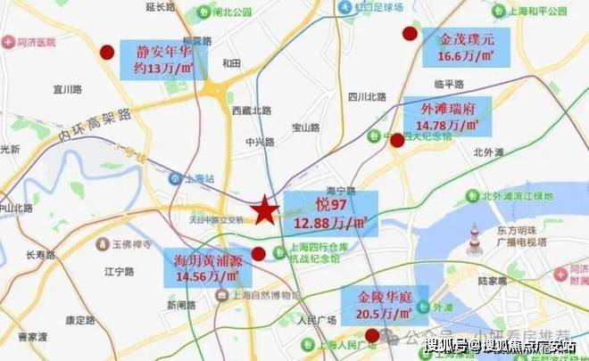 轨道交通:项目步行可达8号线、12号线曲阜路站,直线距离约310米,1站直达人民广场换乘枢纽,2站可达北外滩商圈,30分钟内可通达陆家嘴、静安寺等核心区域。