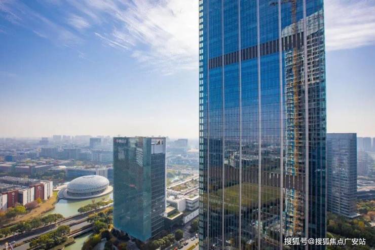 「外立面设计」——整个外立面采用全玻璃幕墙打造,光幕质感无垠一线湖景,将建筑美学和建筑功能有机结合在一起,高端大气。