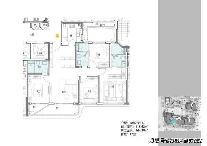 B地块,规划1栋17F住宅,建面约108-148m²高层;