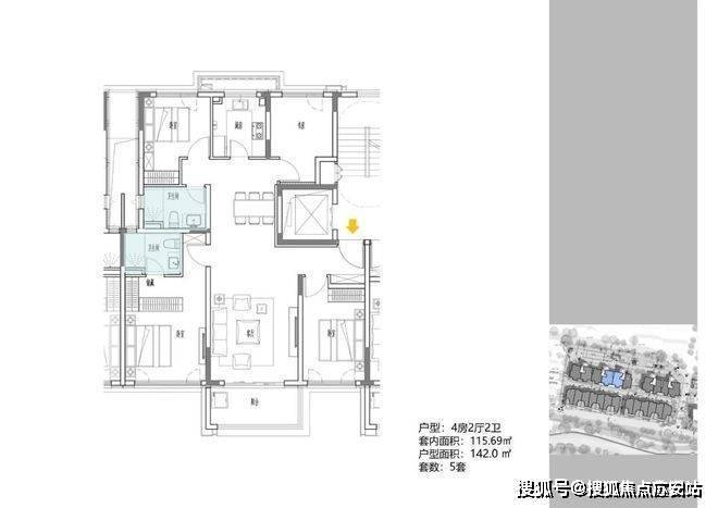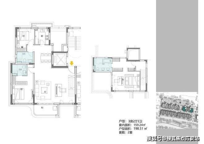 2地块容积率2.94,只有一栋小高层,共67套房源,产品建面约108-148㎡.