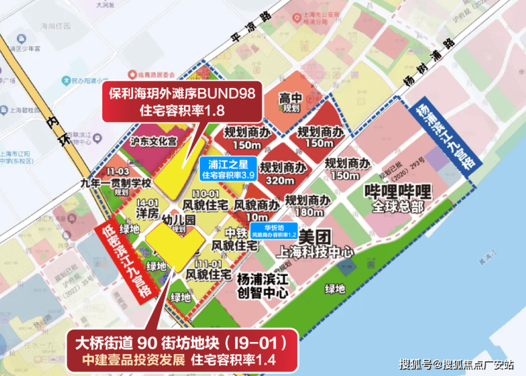 地块东侧,是今年1月20日,同样以协议方式出让的杨浦区定海社区I15-01地块(大桥街道89街坊),意向用地者为中铁置业集团有限公司,总价142641万元,楼面价75005元/㎡。
