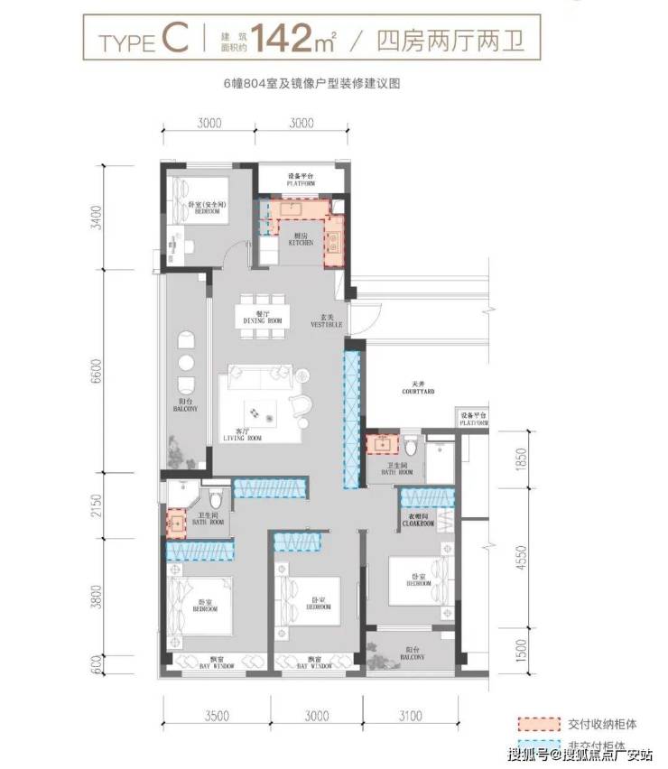 建面约142㎡改善大四房,采用大尺度边厅设计,进一步放大了阳光平权的优势;270°环景视野,提升居家无界的生活质感;南向三卧室+约6.6米边厅观景大阳台,与客餐厅无缝对接,让家人在餐饮娱乐之余,观赏窗外美景,尽揽四季风景。