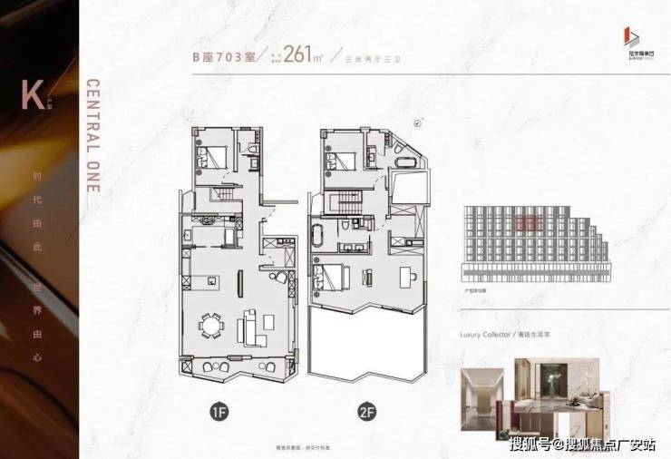 项目涵盖办公、住宅、商业三种业态,包含一栋办公楼、一栋住宅楼及配套底商。住宅楼采用退台设计,可享陆家嘴三件套景观视野。项目共有27套3-4房户型(部分为复式),面积段建面约109-261㎡。