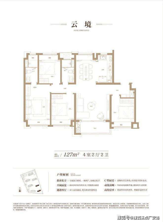 设计亮点:80%高得房率(高于市场70%水平),U型厨房、全明卫生间、南北通透